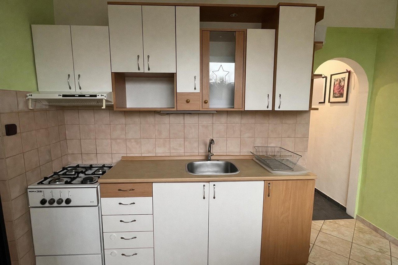 Byt je částečně vybaven: kuchyňská linka se spotřebiči- plynový sporák (bude vyměněn za nový), digestoř, lednice s mrazákem. Dále jídelním stolem a dvěma židlemi, TV stěnou a šatními skříněmi v ložnici a obývacím pokoji.